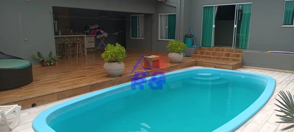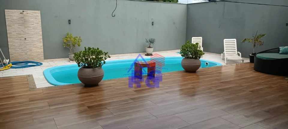 Casa em Alvenaria com 240m² de Área de Construção contendo: 3 Quartos (1 Suíte), Cozinha e Sala Estilo Americano, 4 banheiros, Área Goumert com Churrasqueira, Piscina, Garagem para 3 Carros, Quintal. Terreno de 300m² - Cerca Elétrica - Portão Eletrônico - Interfone.